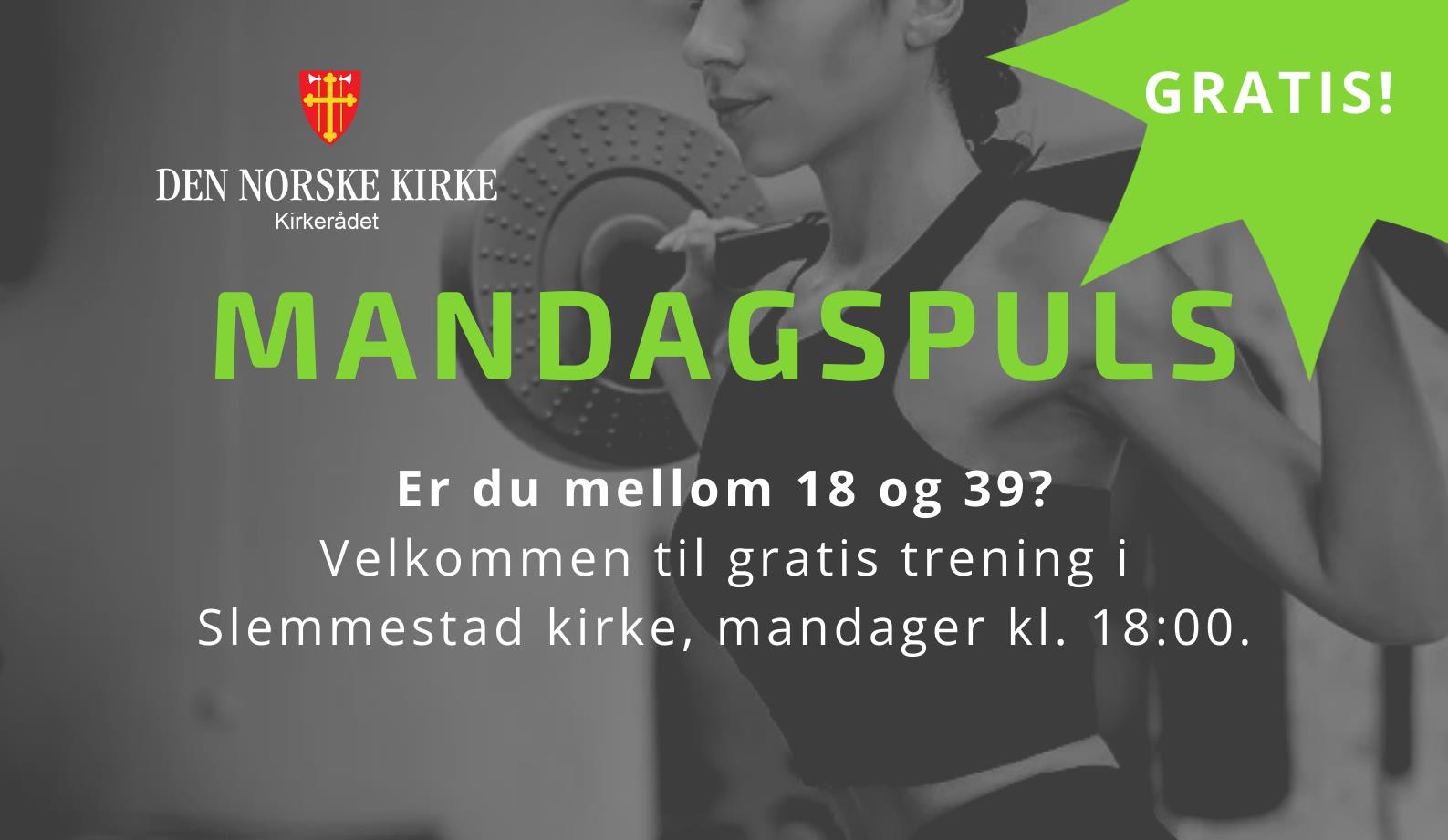 Bli med på gratis trening i Slemmestad kirkestue, hver mandag kl. 18:00. Oppstart 12. januar 2026.
