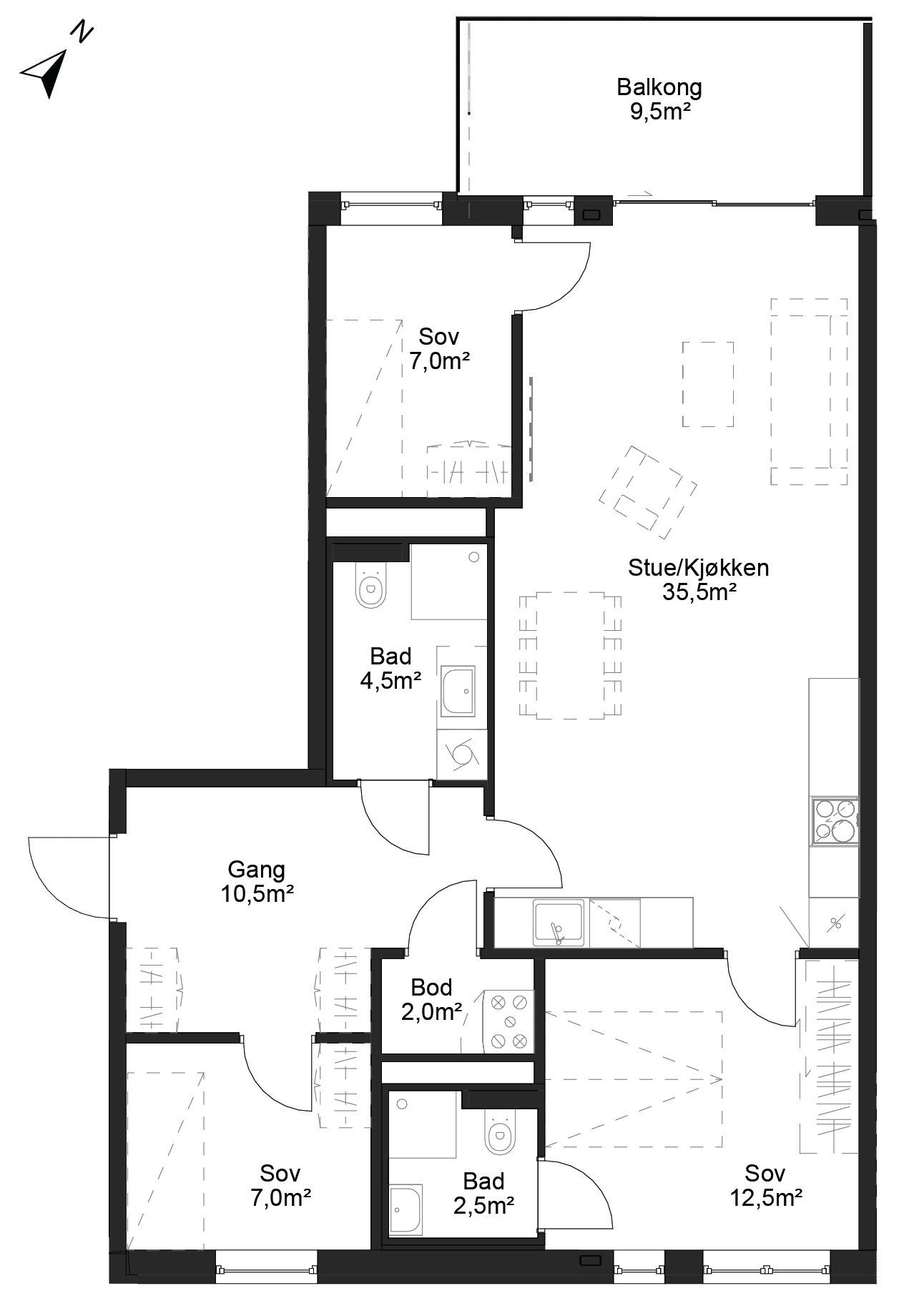 Visningsleiligheten gir et inntrykk av boligens kvaliteter. Åpne i fullskjerm øverst til høyre, og naviger ved å klikke på gulvet eller romknappene øverst til venstre.